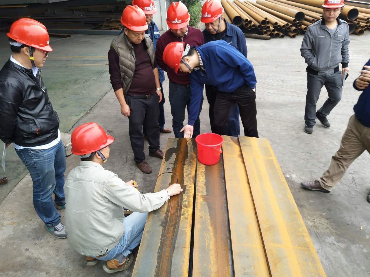 广东华夏阳西电厂项目四千吨,正如火如荼生产制作中,项目检查组对该项目原材料材质规格品牌逐项核对、对焊缝进行了严格的抽检,对生产的进度、有关资料进行现场核实。