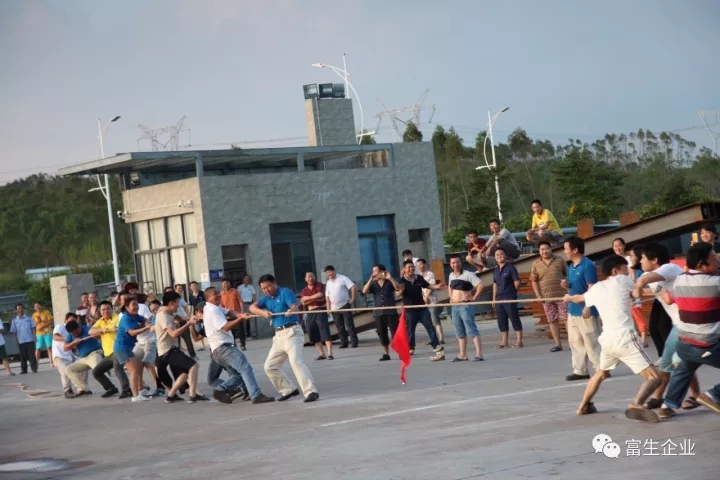 拔河结束,全体富生人来了个大合影,背景又是自带广告。Yeah!