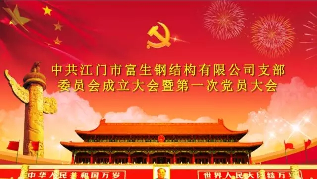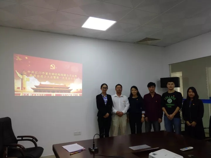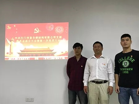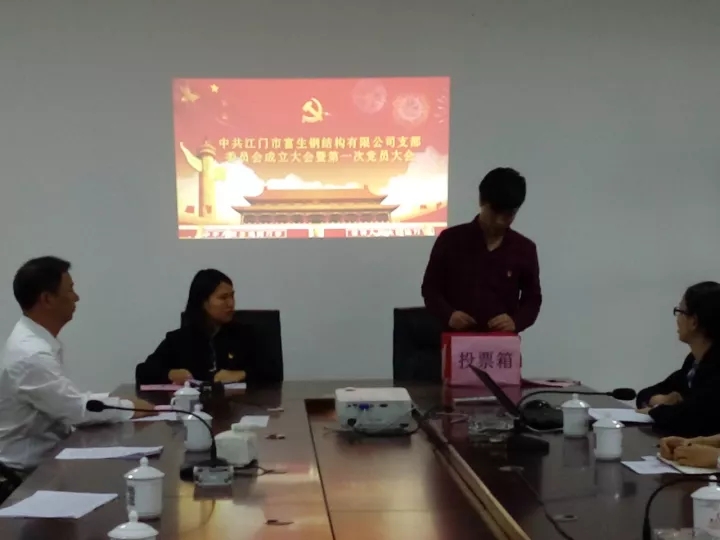 2017年11月7日,江门市富生钢有限公司党支部成立仪式在江门市富生钢结构有限公司3楼会议室隆重举行。翠山湖领导李春苑,江门市富生钢结构有限公司副总经理黄汉春,副总经理阙书琴出席成立仪式,3名党员列席会议。
