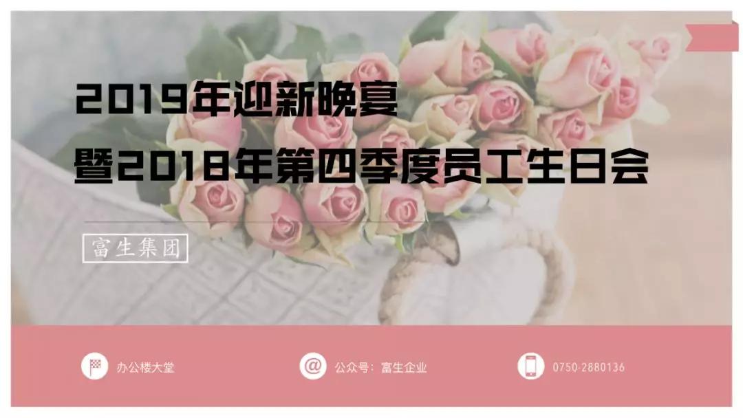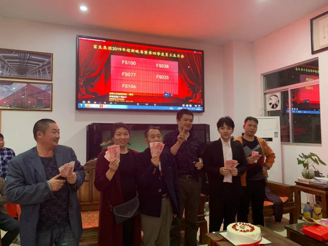 富生集团2019年迎新晚宴、江门市富生钢结构有限公司2018年第四季度员工生日会暨湖南省富生钢结构有限公司一周年庆典到这里就圆满结束了。感谢出席参加的各位富生同仁以及供应商伙伴们,在这样一个欢聚一堂的重要日子里,让我们感受到了来自大家庭的温暖和祝福。相信2019年,在大家的共同努力和奋斗下,富生集团一定会继续乘风破浪、再创辉煌!