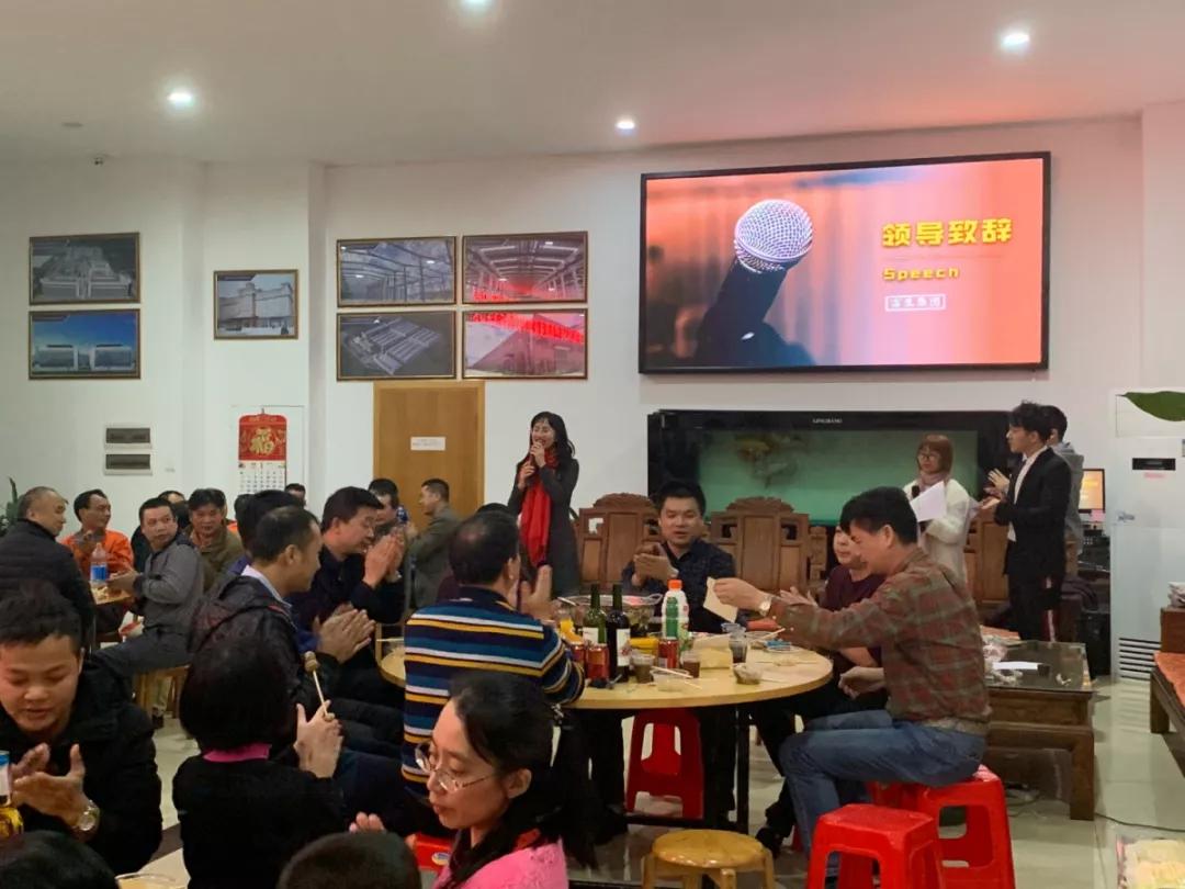 晚宴正式开始,首先由我们富生集团的副总裁阙书琴女士为大家致欢迎词。阙副总对大家出席参加晚宴表示热烈的欢迎和诚挚的感谢。2018年富生又经历了精彩充实的一年,今年更是与大家共同见证了富生建设&富生钢构三周年、富生生贸易盛大开业暨富生集团隆重成立的重要时刻。富生一路走来风风雨雨,离不开所有人的支持和帮助。相信在2019年,富生集团在大家的共同努力下会继续一路乘风破浪、再创辉煌!